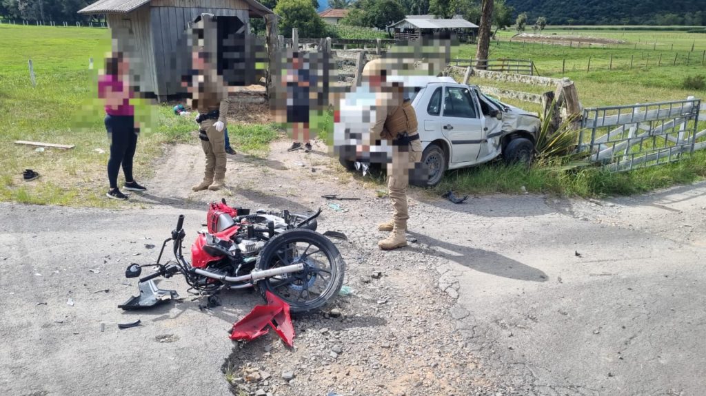 O acidente entre uma moto e um veículo aconteceu na SC-370, bairro Esquina, no município de Urubici, por volta das 15h28min, desta terça-feira (28).