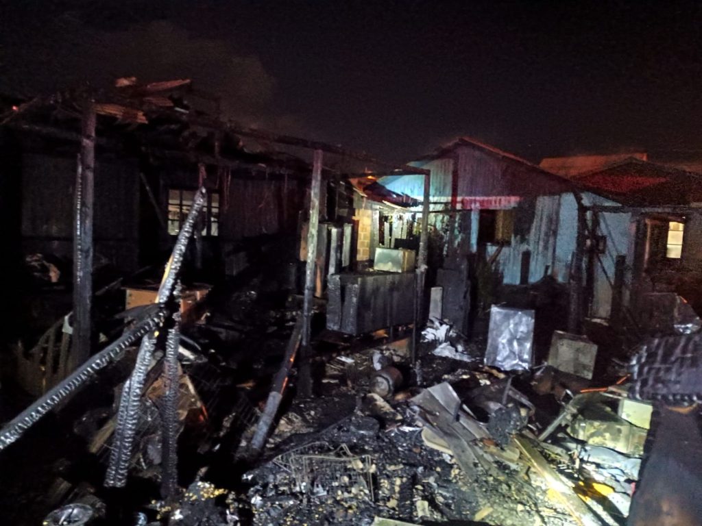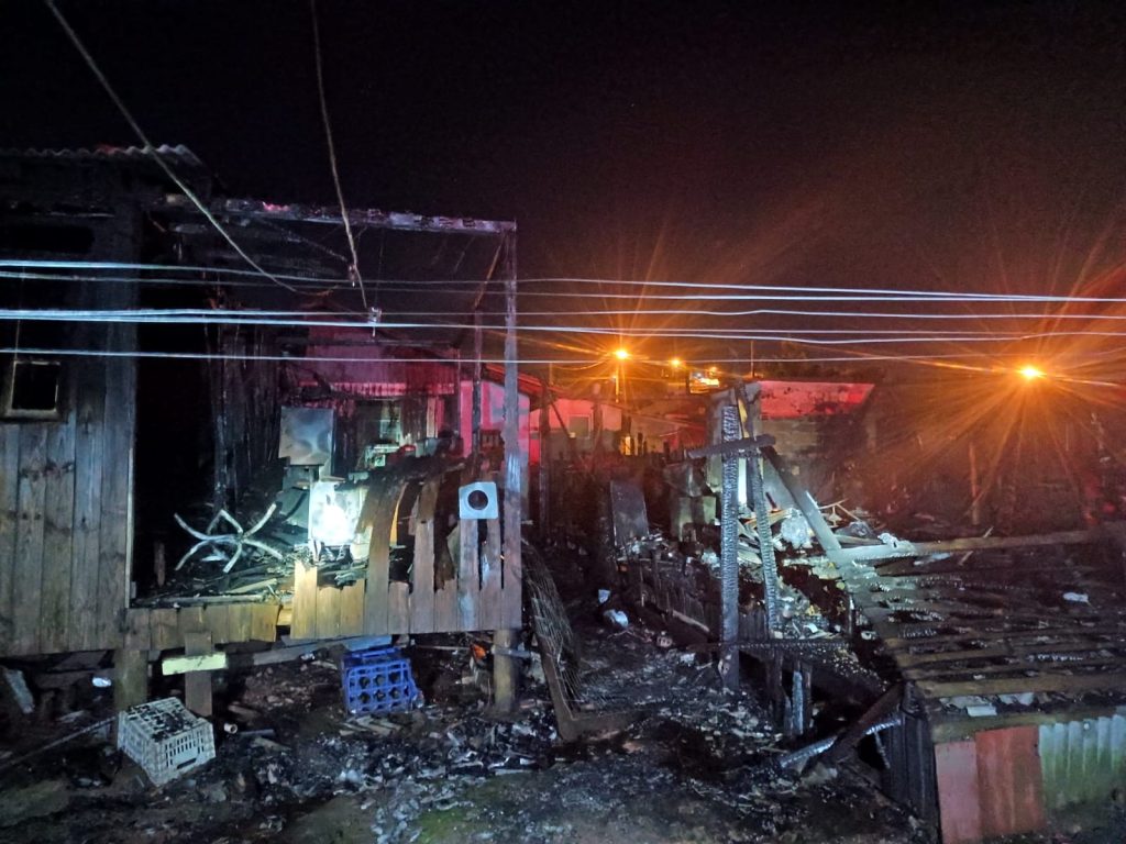 Um incêndio destruiu duas residências na Rua Acílio Cavalheiro do Amaral, Bairro Santa Paulina, em São Joaquim, na noite desta sexta-feira, 14.