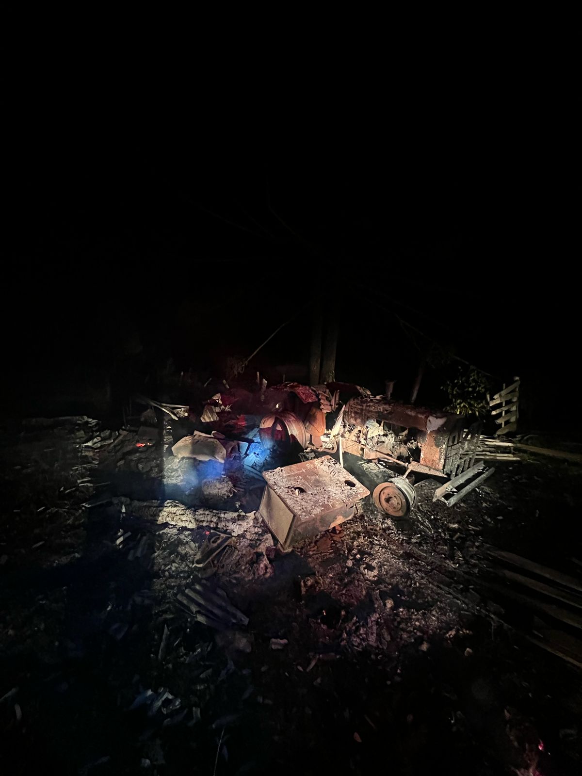 No local, os socorristas encontraram um galpão, que servia como garagem e depósito, tomado pelas chamas. No interior do galpão, havia maquinário agrícola, como um trator com carreta, além de móveis e eletrodomésticos, já consumidos pelo fogo. O proprietário estava trabalhando no momento do incêndio. Ao chegar no local, o fogo já havia se alastrado e nada pôde ser feito para conter as chamas. Os bombeiros isolaram a área e controlaram o fogo.