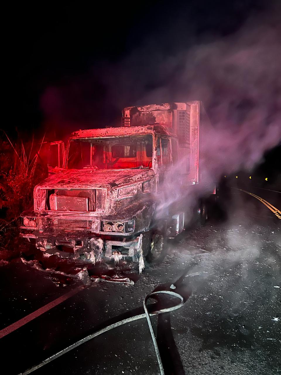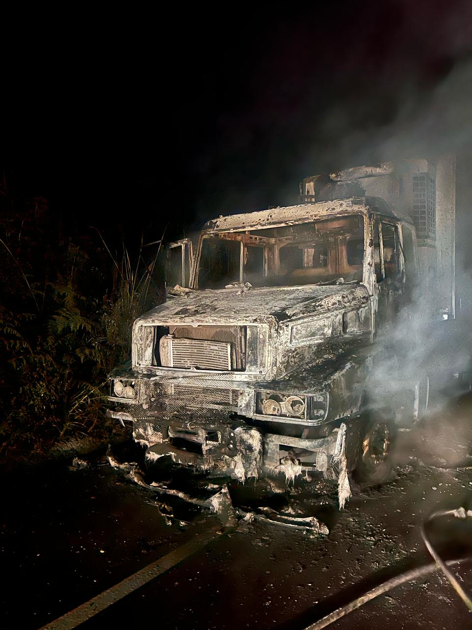 O Corpo de Bombeiros Militar de São Joaquim foi acionado às 2h11, da madrugada desta quarta-feira (12), para atender um incêndio em um caminhão carreta baú, na SC-114, no km 289, interior do município de São Joaquim.