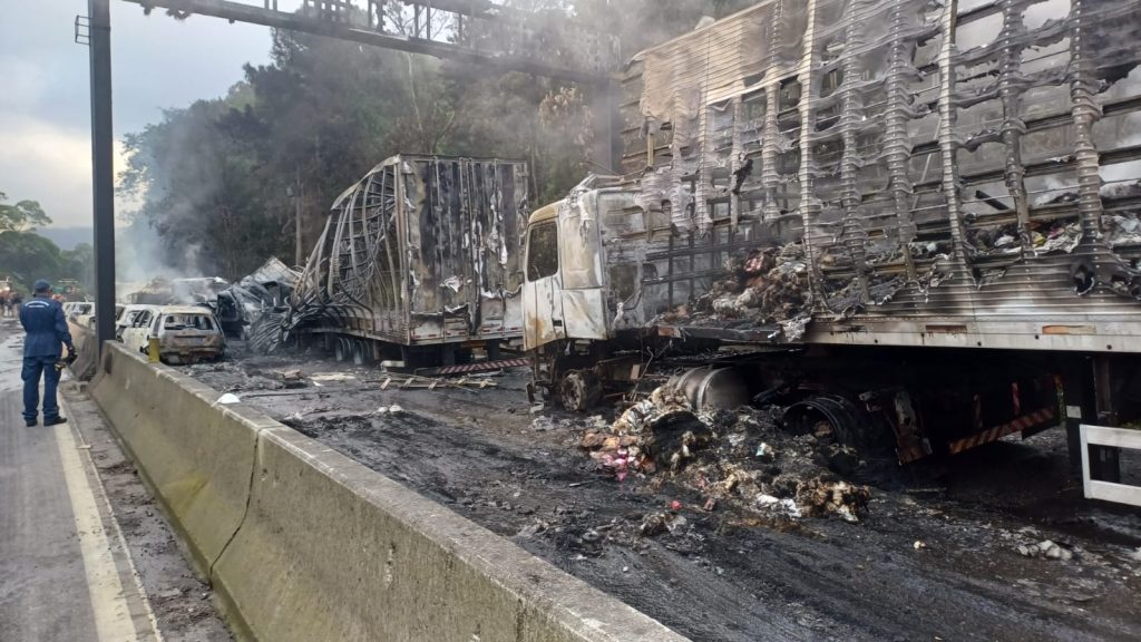 De acordo com o Corpo de Bombeiros Militar de Santa Catarina (CBMSC), 24 carros e três carretas foram atingidos pelas chamas. Cerca de 36 bombeiros, entre militares e comunitários, atuaram na ocorrência ao longo de toda a tarde e madrugada.