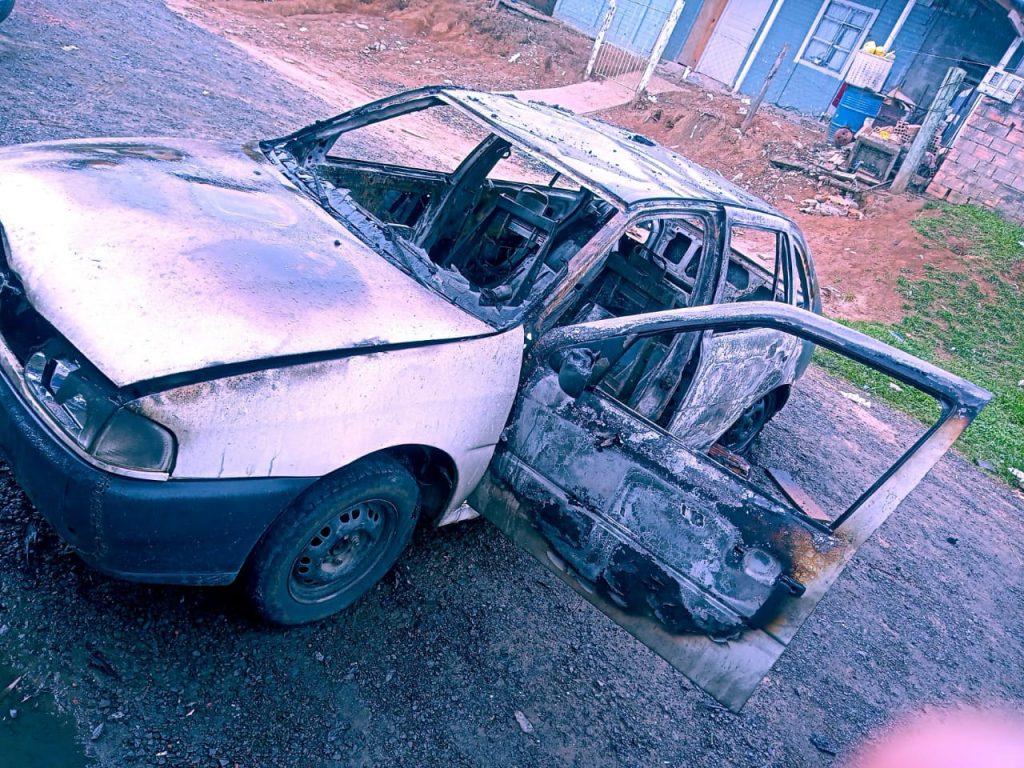 Um carro pegou fogo na madrugada desta segunda-feira (07) na Rua Sebastião Luís Duarte, no bairro Planalto em Correia Pinto.