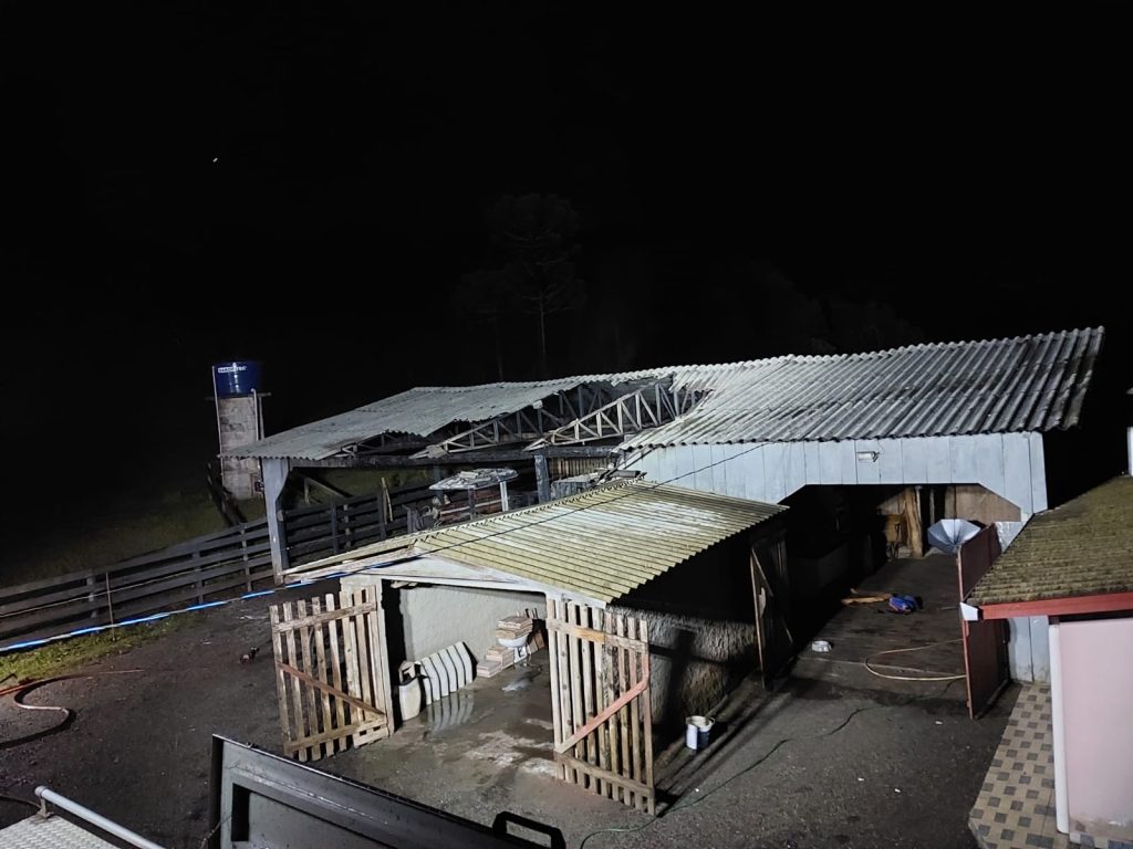 O maquinário agrícola estava em um galpão de madeira, próximo à residência do proprietário. Ao chegarem ao local, os bombeiros constataram que as chamas já haviam se espalhado e ameaçavam atingir as demais estruturas da propriedade, que incluem o galpão e o imóvel, interligadas entre si.
