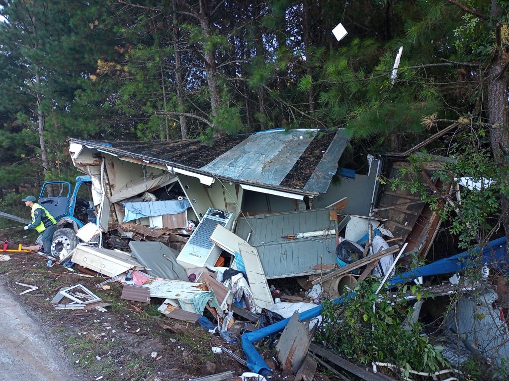 Já nos caminhões, todos os quatro ocupantes ficaram feridos. O que tombou era ocupado apenas pelo motorista, um homem de 37 anos que apresentava um leve Traumatismo Crânio Encefálico (TCE), escoriações e alguns cortes pelo corpo.