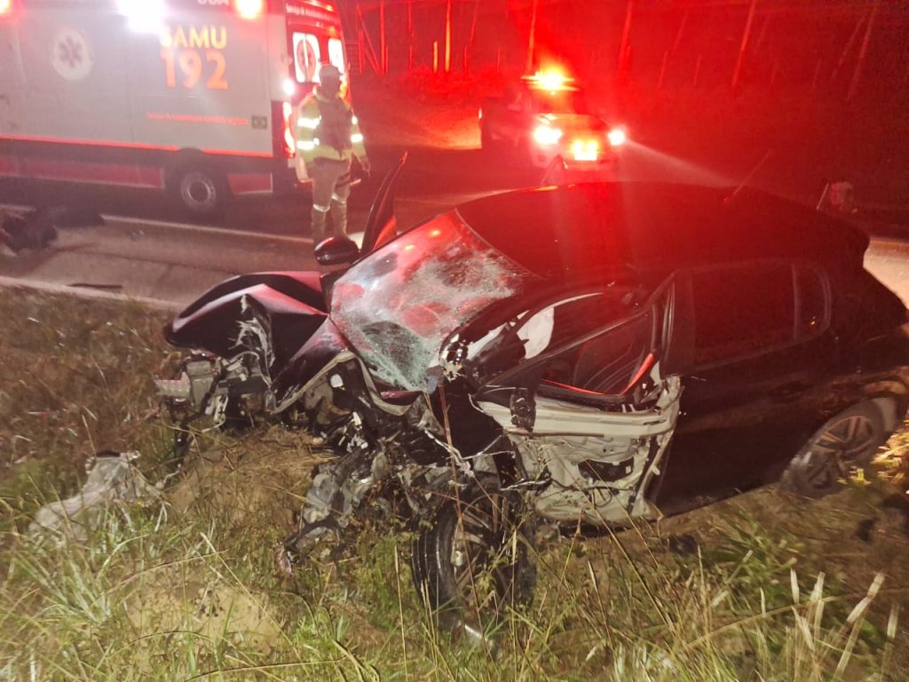 Um grave acidente registrado na madrugada deste sábado (26) resultou na morte de três pessoas e deixou outra gravemente ferida em São Joaquim. A colisão frontal entre dois veículos ocorreu por volta da 1h43, na Rodovia SC-110, na localidade de Morro Agudo, interior do município. De acordo com informações do 5º Batalhão de Bombeiros Militar e Policia Militar Rodoviária Estadual, no local, constataram a colisão de alta energia envolvendo um Chevrolet Celta, de cor vermelha, e um Peugeot 308, de cor preta, ambos com placas padrão Mercosul.