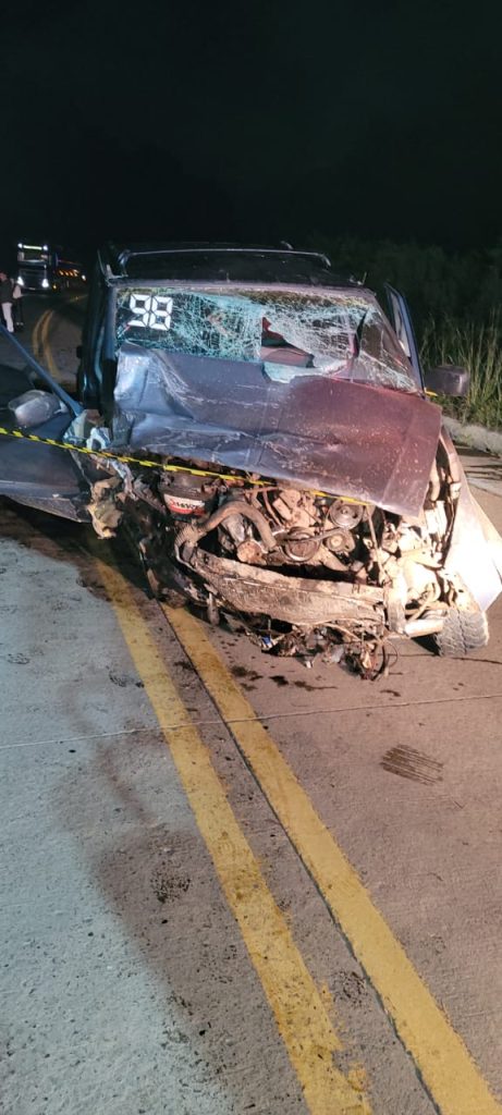 A colisão frontal entre dois veículos resultou na morte de uma pessoa, e deixou outra gravemente ferida. De acordo com os Bombeiros, as equipes de resgate foram acionadas por volta da 01h18min, e se deslocaram com as viaturas ASU-527, ABTR-65 e USB 03 para o local do acidente. Ao chegarem, confirmaram a gravidade da situação. O condutor de uma caminhonete Fiat Strada, um homem de 37 anos, foi encontrado sem vida e preso às ferragens. Seu corpo foi retirado e deixado aos cuidados do Instituto Médico Legal (IML).