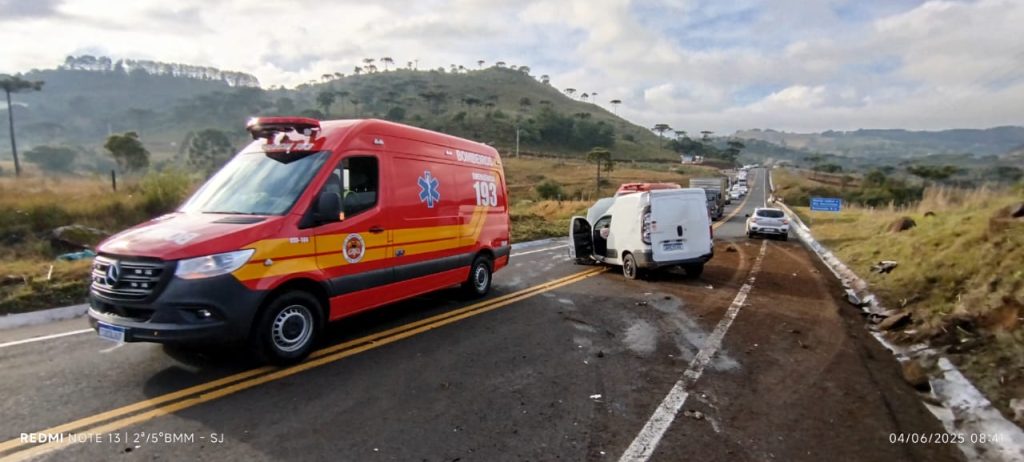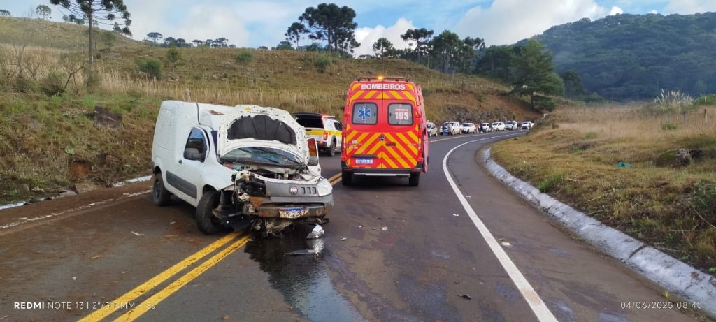Quem trechou para São Joaquim ou quem vinha no sentido oposto, pela SC-114 km-298, na manhã desta quarta-feira (04), teve que ficar parado na rodovia, devido a um acidente de trânsito, onde o condutor de um veículo FIAT Fiorino, de 21 anos, sofreu ferimentos após perder o controle do carro ao iniciar uma curva, sair da pista, bater em um barranco e capotar.