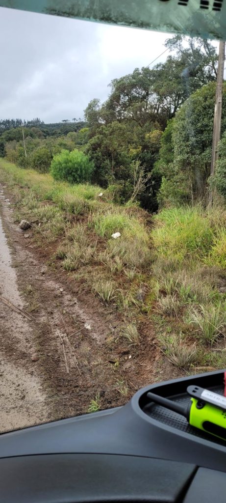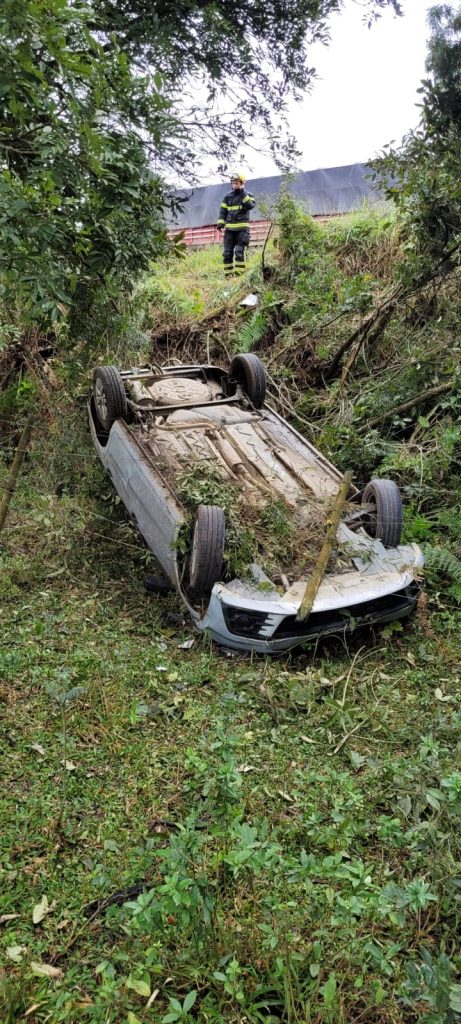 Segundo a condutora, ela seguia sentido Palmeira x Otacílio Costa, quando foi realizar uma ultrapassagem, e iria colidir com uma caminhonete que se deslocava em sentido contrário. Para evitar a colisão frontal ela tirou o carro para fora da pista, descendo um matagal, o carro ficou com as rodas para cima. Ela mesmo conseguiu sair do veículo e foi até a residência mais próxima pedir ajuda.