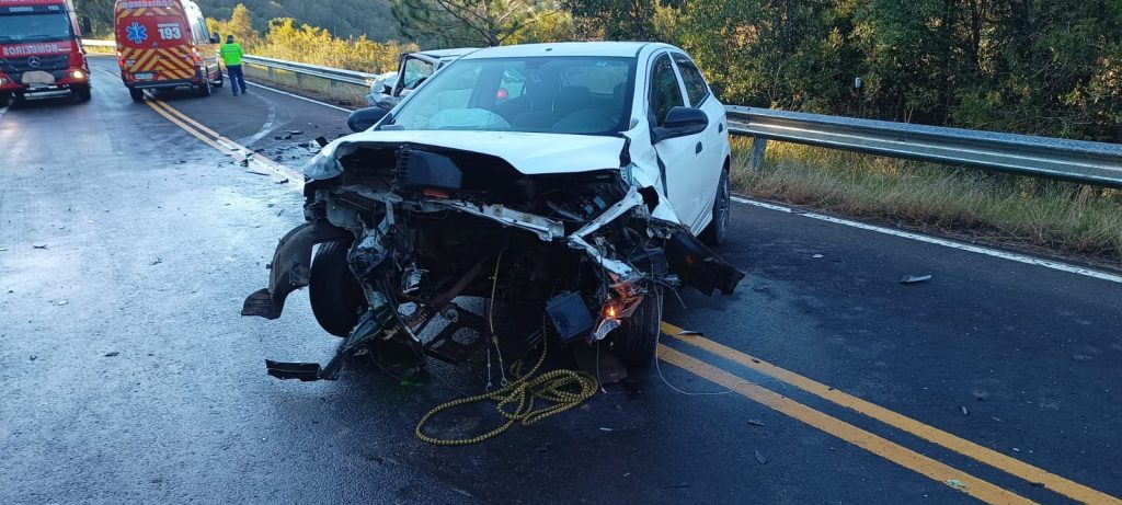 Na manhã desta quinta-feira, 3 , um grave acidente de trânsito foi registrado na SC-452, entre os municípios de Anita Garibaldi (SC) e Pinhal da Serra (RS). A colisão envolveu dois veículos ,um Volkswagen Gol e um Chevrolet Onix , e mobilizou equipes do 5º Batalhão de Bombeiros Militar.