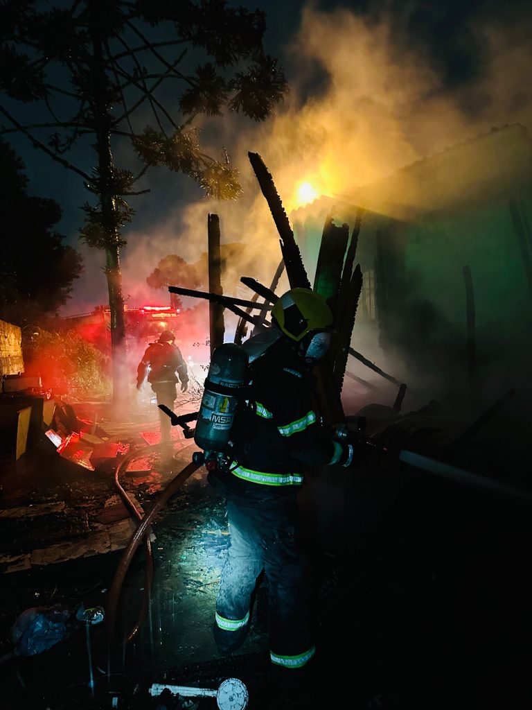 Equipes do Corpo de Bombeiros, com as guarnições do ASU-446 e do ABTR-105, foram acionadas para conter as chamas que consumiam parte da edificação de aproximadamente 60 m². No local, os bombeiros confirmaram que a estrutura de madeira, com cerca de 15 m², foi completamente destruída pelo fogo.
