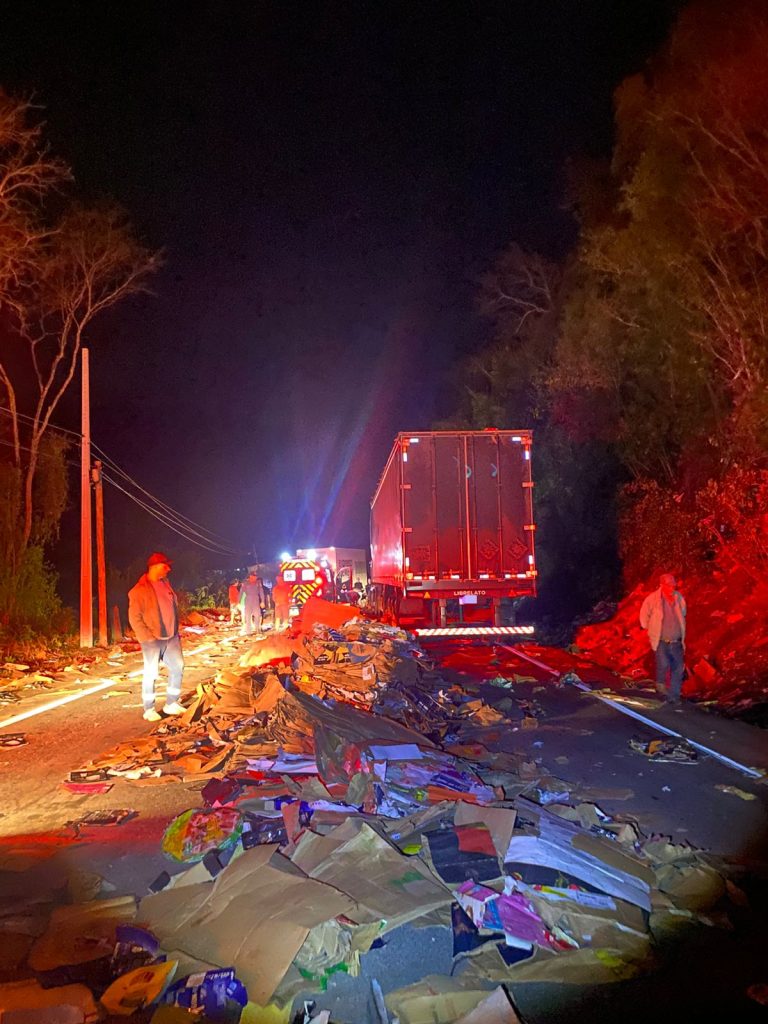 Na noite desta terça-feira (2), por volta das 21h24min, equipes de resgate foram acionadas para atender a um grave acidente de trânsito na BR-282, em Alfredo Wagner, envolvendo três veículos de carga.