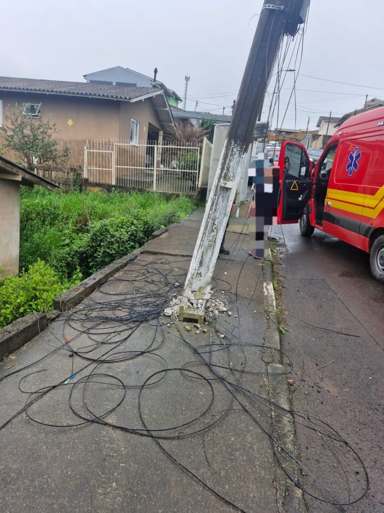 Segundo o Corpo de Bombeiros, a vítima relatou que desembarcava de um ônibus quando foi atingida por um veículo e prensada contra um poste, que ficou danificado, deixando fiação solta.