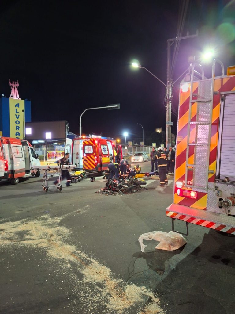 Na noite deste domingo (14), por volta das 21h30, equipes do Corpo de Bombeiros atenderam a uma colisão entre um carro e uma motocicleta na Avenida Dom Pedro II, bairro Universitário, próximo ao Alvorada, em Lages.
