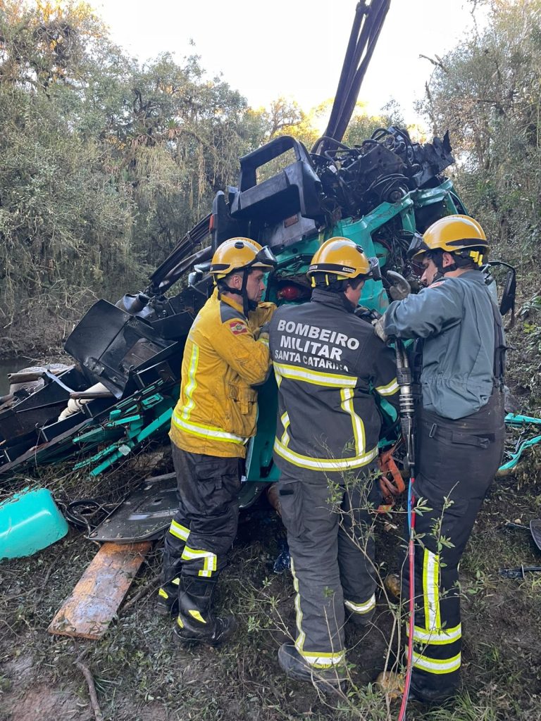 Após o resgate do veículo, foi feito o desencarceramento da vítima, com corte da cabine, retirada da porta e expansão do painel. O corpo ficou aos cuidados da Polícia Científica.