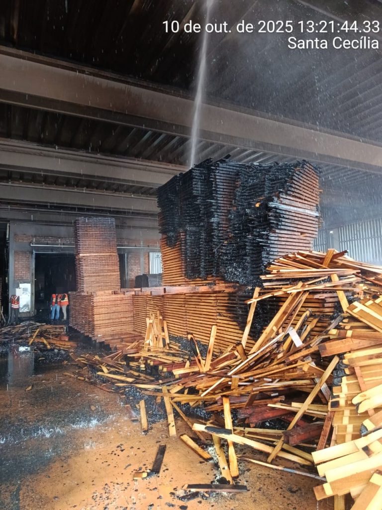 As equipes também realizaram ventilação forçada para dispersão da fumaça. Com o apoio de retroescavadeiras e empilhadeiras, foi possível salvar boa parte do material armazenado e impedir a propagação das chamas para outras áreas da empresa.