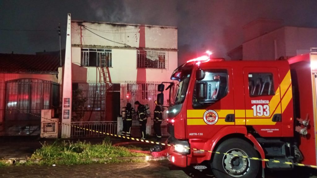 Lages (SC) – Um incêndio em uma residência de dois pavimentos mobilizou o Corpo de Bombeiros na madrugada deste sábado (11 ) no bairro Copacabana, em Lages. As guarnições foram acionadas por volta das 00h08, após relatos de fogo em uma casa localizada próxima ao Supermercado Myatã, na Rua São Joaquim.