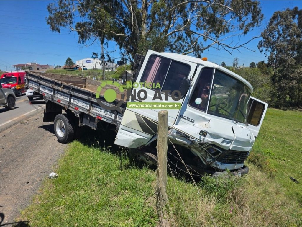 Uma colisão frontal foi registrada por volta das 11h30min desta quarta-feira (15) na avenida Juscelino Kubitschek de Oliveira, no acesso norte de Lages. O acidente envolveu um Volkswagen Polo e um Mercedes-Benz 608.