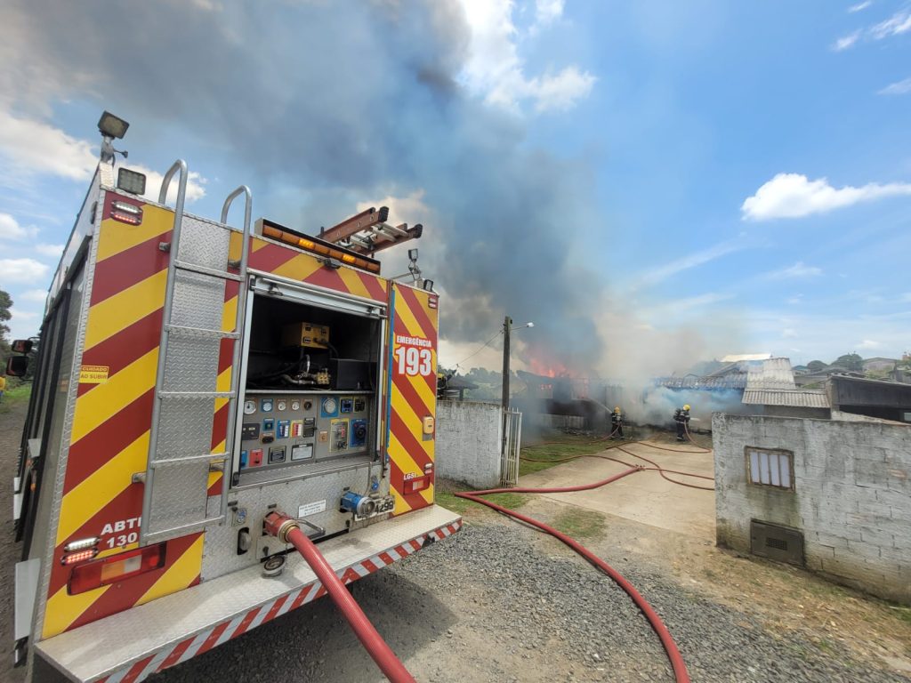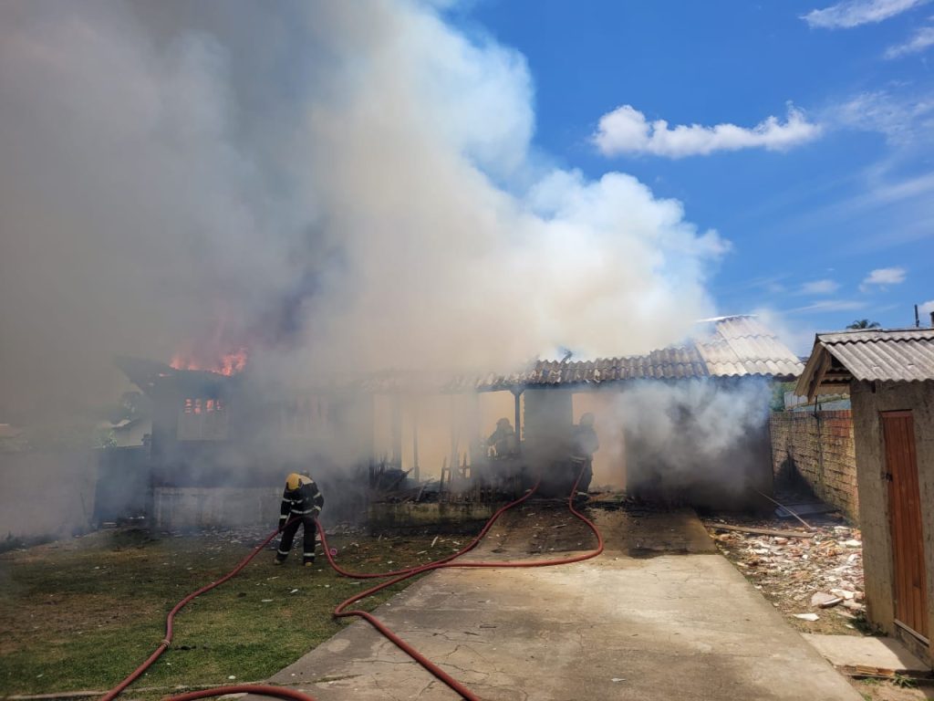 Lages -Um incêndio de grandes proporções destruiu uma residência no início da tarde desta sexta-feira (14), na Rua Antônio Elias Azi, no bairro São Miguel, em Lages. O Corpo de Bombeiros Militar foi acionado por volta das 12h30, após vizinhos perceberem as chamas e acionarem a Central de Operações.
