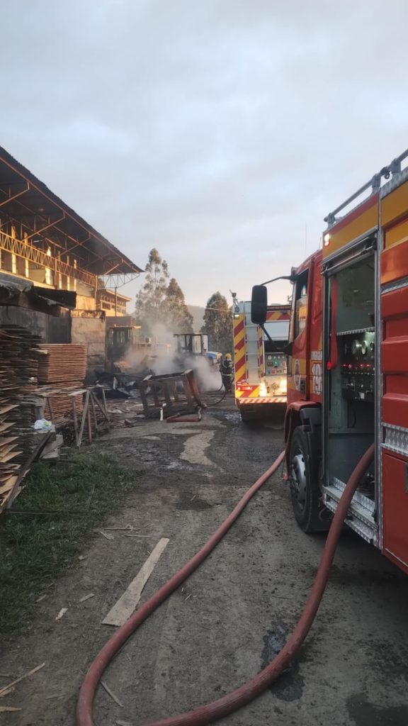 A ocorrência foi registrada por volta das 23h07min, quando as guarnições das viaturas ABTR-130 e ABTR-182 foram acionadas para atender ao sinistro. Ao chegarem ao local, os bombeiros constataram que as chamas haviam se concentrado em uma estufa de secagem de lâminas de madeira utilizadas na produção de compensado, com área aproximada de 54 metros quadrados e cerca de 40 metros cúbicos de madeira armazenada.