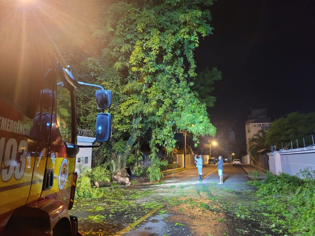 Um quarto ponto de bloqueio foi registrado na Rua Ceará, esquina com a Rua Amapá, no bairro São Cristóvão, onde outra árvore caiu e também precisou ser removida pela guarnição.