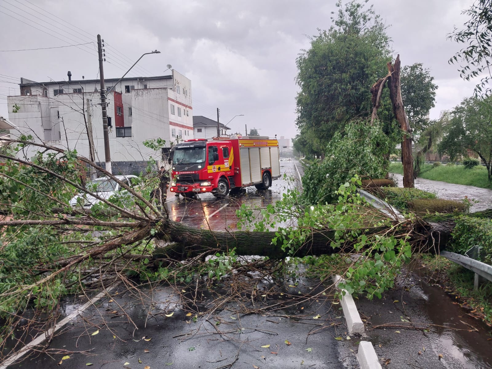 Um forte vendaval acompanhado de chuva intensa atingiu Lages na tarde deste domingo (30), provocando quedas de árvores, alagamentos e destelhamentos em diferentes pontos da cidade. Por volta das 18h15, a guarnição do ABTR-130 foi acionada para atuar em quatro ocorrências relacionadas à queda de árvores que obstruíam vias públicas.