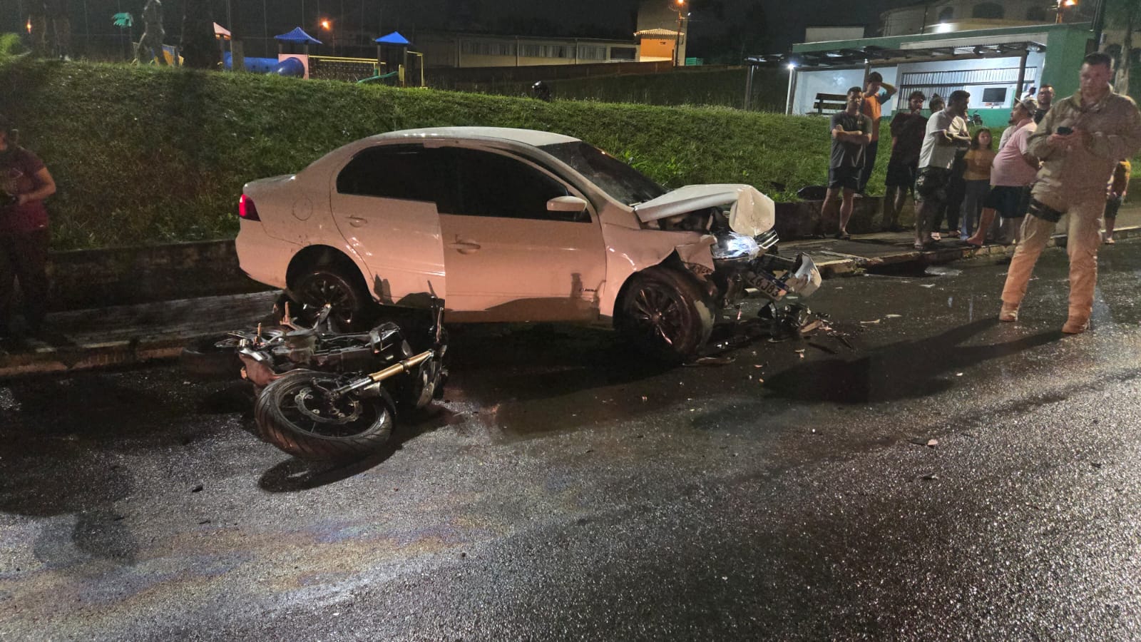 Após avaliação, a mulher dirigiu-se por conta própria à ambulância ASU-527. O motociclista foi atendido no local e conduzido à viatura para exames complementares. Ambos apresentavam sinais vitais estáveis, e tiveram os membros superiores imobilizados — ela no braço direito e ele no esquerdo. O homem também apresentava escoriações leves na região pélvica.