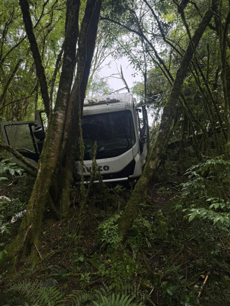 Ao chegar ao local, a guarnição confirmou a ocorrência e encontrou o veículo em uma ribanceira, com quatro ocupantes já fora da cabine e caminhando pela área. O Serviço de Atendimento Móvel de Urgência (SAMU) de Bom Retiro foi acionado para dar apoio e encaminhou uma das vítimas para atendimento médico.