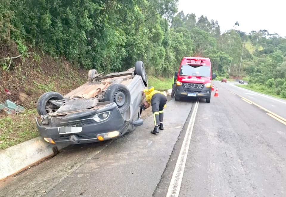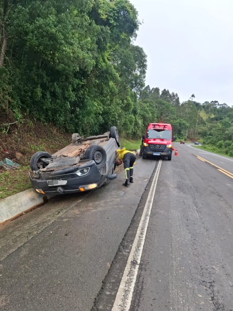 Na manhã desta terça-feira, dia 02, por volta das 9h29min, no km 116 da BR-282, sentido Alfredo Wagner, o Corpo de Bombeiros de Bom Retiro foi acionado para atender a um acidente de trânsito envolvendo a saída de pista e capotamento de um veículo Renault Logan, com placas de Chapecó.