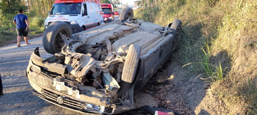 Um acidente de trânsito foi registrado na tarde deste sábado (07), por volta das 17h50, na Estrada Geral da Vila Aparecida, em Otacílio Costa. Um veículo capotou após a motorista perder o controle da direção, deixando cinco pessoas feridas.