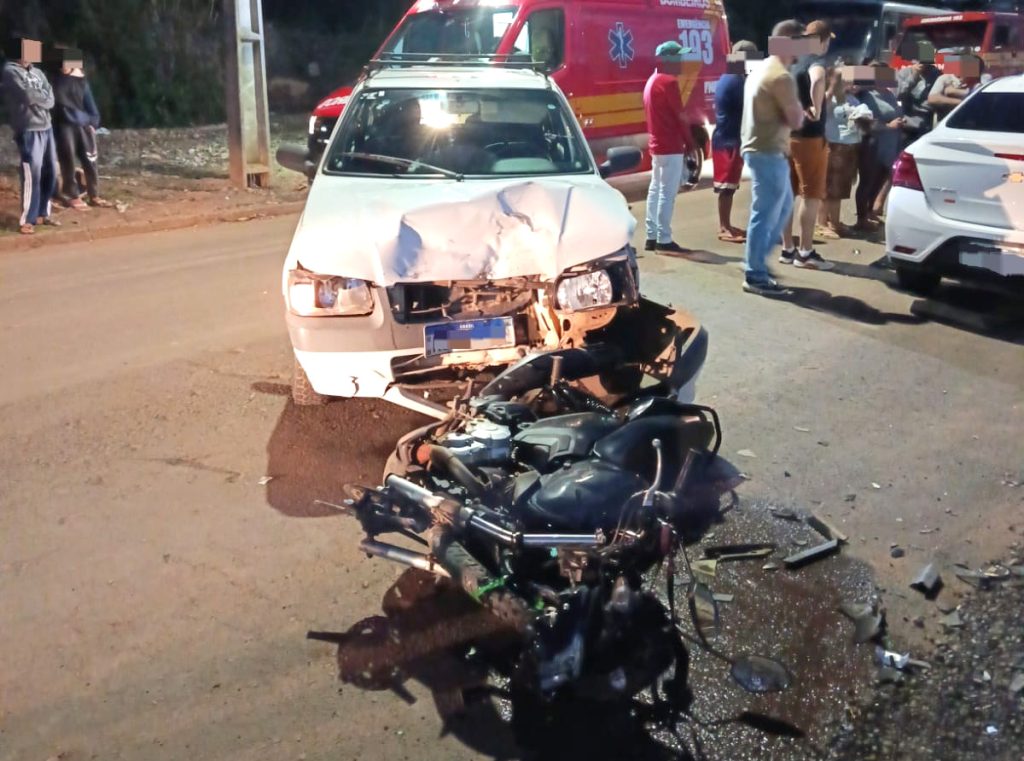 A ocorrência envolveu uma colisão frontal entre um automóvel Fiat Uno e uma motocicleta Yamaha Factor 150. O condutor do carro, um homem de 31 anos, encontrava-se fora do veículo, com sinais vitais normais, sem ferimentos aparentes e recusou atendimento médico. A passageira do automóvel também estava estável e igualmente recusou atendimento, permanecendo no local.
