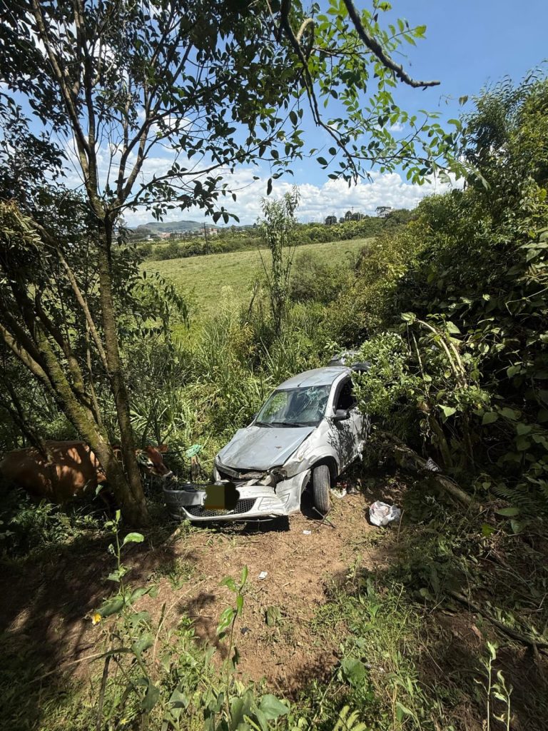 O veículo parou a aproximadamente 15 a 20 metros de distância da via, em local íngreme e de difícil acesso. A Polícia Militar esteve no local para os demais procedimentos cabíveis.