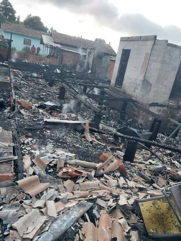 Durante o deslocamento, os bombeiros receberam a informação de que três casas estariam em chamas. No entanto, ao chegar ao local, foi constatado que se tratava de uma única edificação de madeira, com aproximadamente 150 metros quadrados, subdividida internamente em três residências independentes.