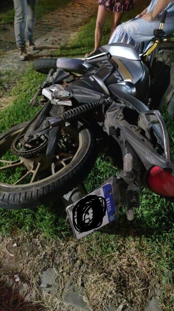 No local, a guarnição constatou que a motocicleta Honda Titan era conduzida por um homem de 27 anos, que se encontrava em decúbito dorsal, sem capacete, consciente e orientado, relatando dores na região lombar. A vítima apresentava ainda amputação do dedo anelar do pé direito.