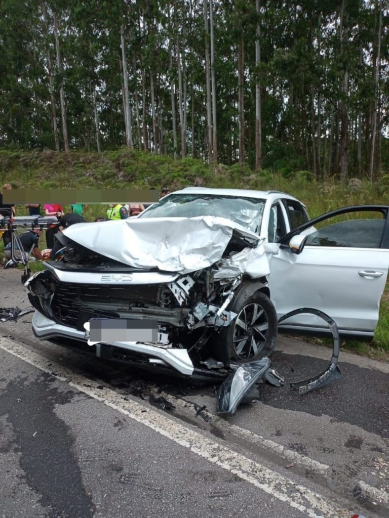No local, foi constatada uma colisão frontal envolvendo os veículos Chery Tiggo 4 Pro, BYD Song Pro, Jeep Compass Sport e uma motocicleta Honda CG 160. O Tiggo ficou atravessado entre as duas pistas, com airbags acionados e sem ocupantes em seu interior no momento da chegada das equipes. O BYD encontrava-se lateralizado na via, também sem ocupantes internos e com airbags deflagrados. A motocicleta estava sob a traseira do Tiggo, com o condutor caído ao lado. Já o Jeep apresentou danos no capô e no para-brisa após o impacto do motociclista, mas sua condutora não sofreu ferimentos.