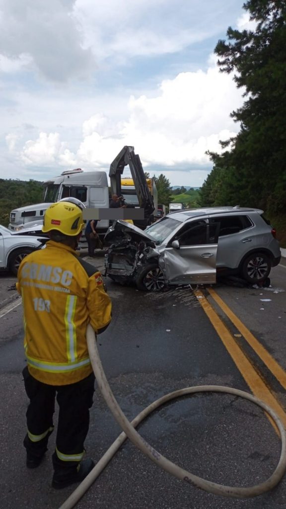 Um grave acidente de trânsito envolvendo três automóveis e uma motocicleta foi registrado na tarde desta sexta-feira (16), por volta das 14h50, no km 115 da BR-282, no município de Bom Retiro, na Serra Catarinense.