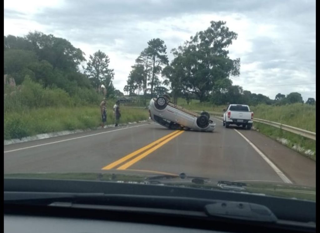 No local, a equipe encontrou um veículo que havia capotado, com três ocupantes. Apesar do impacto e do susto, nenhuma das vítimas sofreu ferimentos.