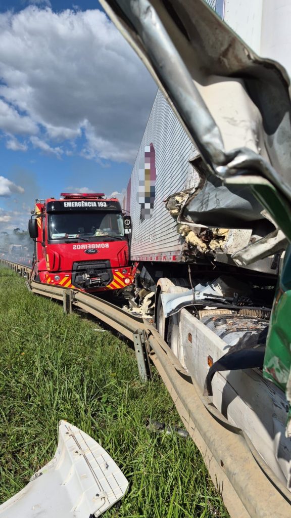 Um caminhão do Corpo de Bombeiros Militar foi atingido por uma carreta na tarde desta sexta-feira (24), por volta das 15h39, enquanto a guarnição atendia uma ocorrência na BR-116, no km 285, em Capão Alto, na Serra Catarinense.