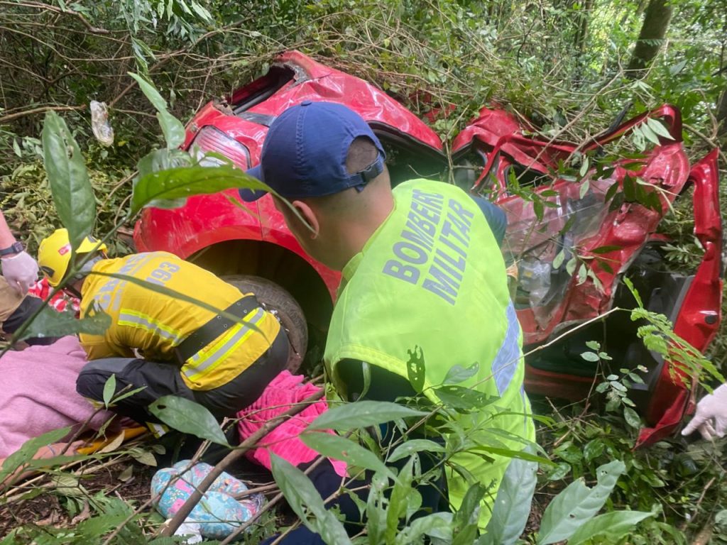 A ocorrência envolveu um veículo GM Ágile, que saiu da pista, capotou e caiu em uma ribanceira de aproximadamente 40 metros de altura. No automóvel estavam cinco ocupantes.