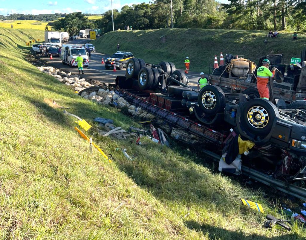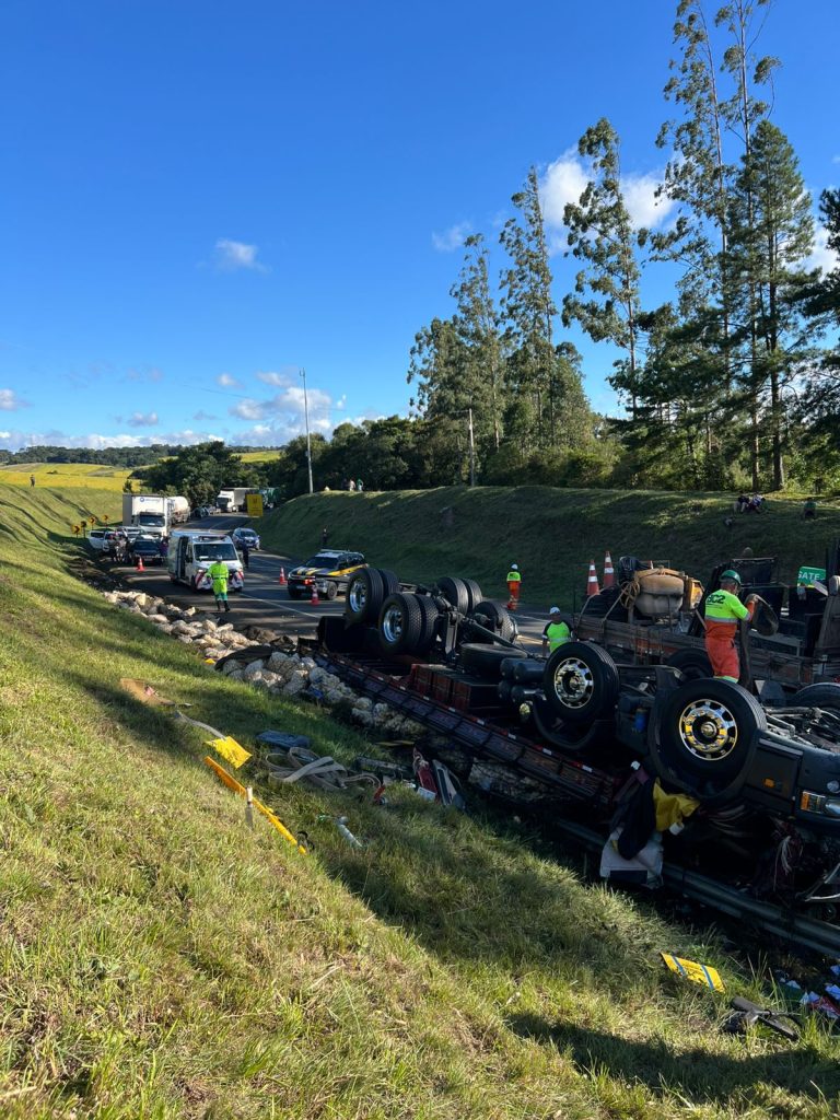 Uma saída de pista seguida de tombamento foi registrada na tarde desta sexta-feira (20), por volta das 15h57min, na BR-116, Km 210, no município de Ponte Alta.