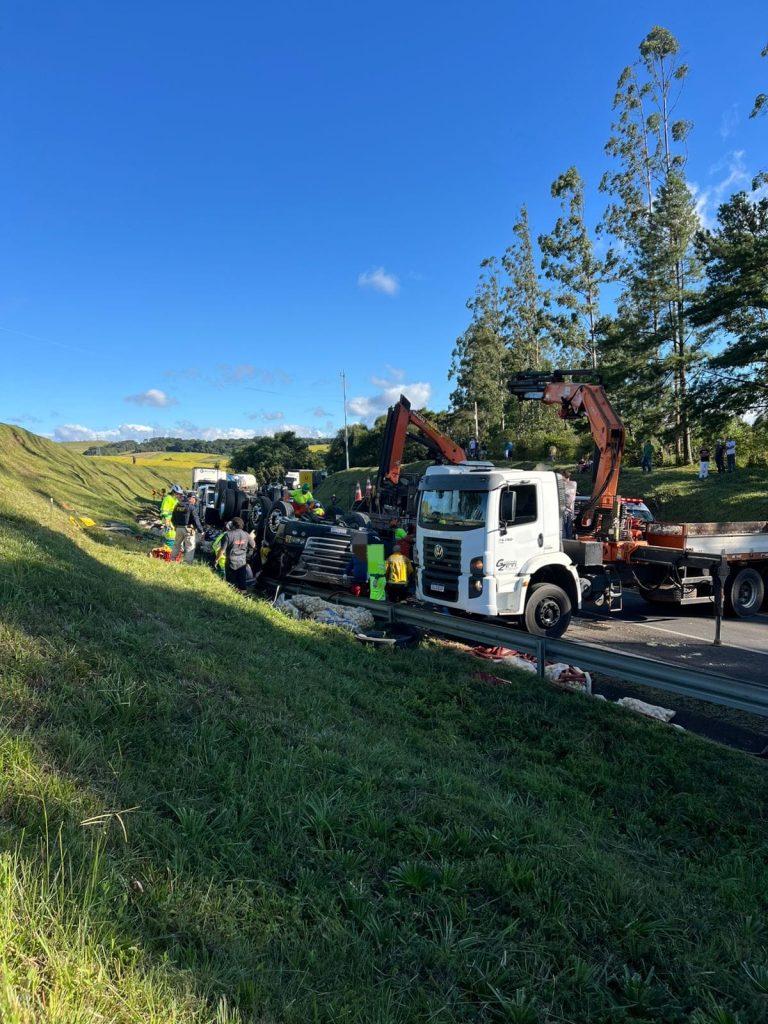 Devido ao risco de incêndio, os bombeiros montaram uma linha de combate, já que havia relatos de que populares haviam controlado um foco de fogo anteriormente. Durante o atendimento, também estiveram presentes equipes da Polícia Rodoviária Federal (PRF) e da concessionária.