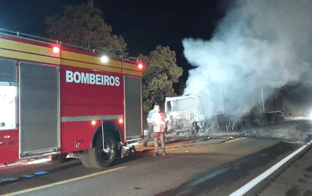 As guarnições do ABTR-75 e AR-282 foram acionadas e, ao chegarem ao local, constataram que uma carreta Iveco Bitrem, com placas no padrão Mercosul e conduzida por um homem de 46 anos, estava tomada pelas chamas.