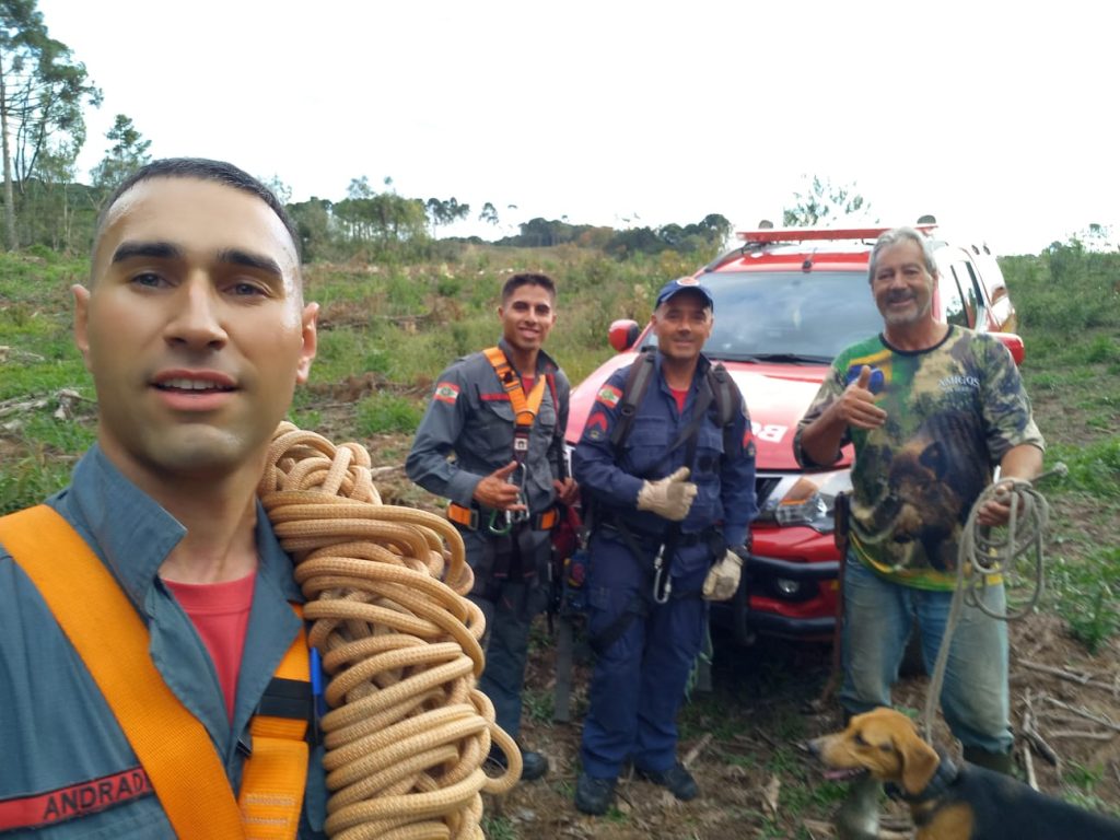 Uma equipe do Corpo de Bombeiros Militar de Lages realizou, na tarde desta quarta-feira (25), o resgate de um cachorro que havia caído em uma ribanceira na localidade de Lambedor, área rural do município.