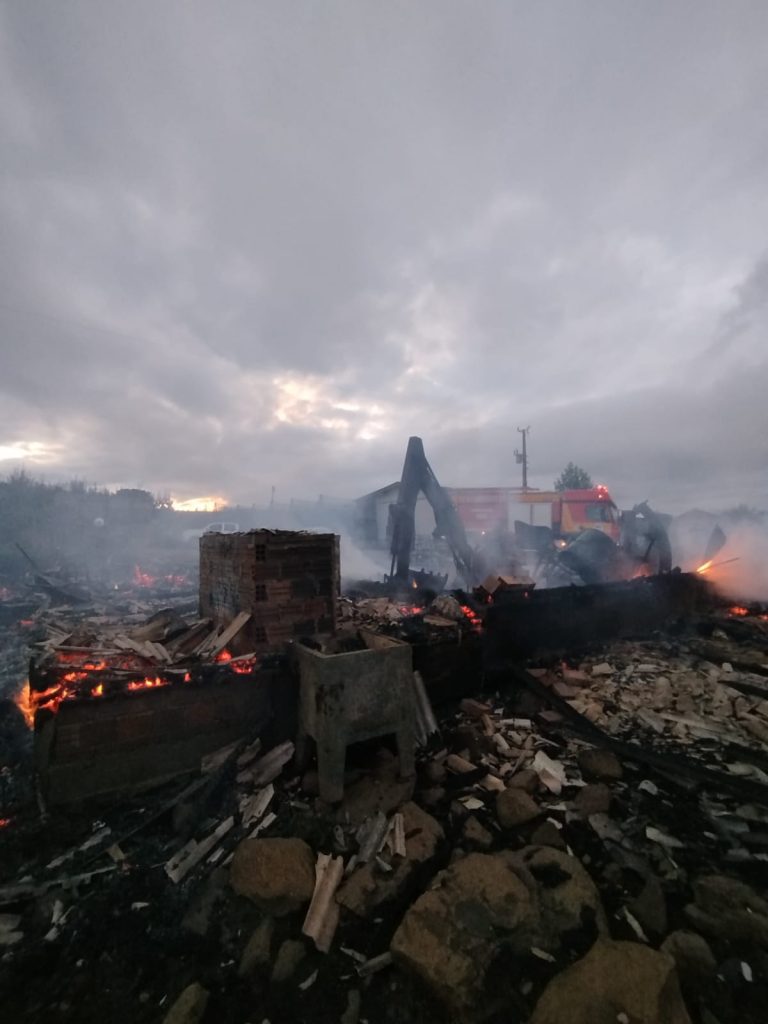 Ao chegarem ao local, os bombeiros confirmaram que as chamas atingiam uma casa de madeira e um barracão utilizado para armazenar implementos agrícolas. Segundo o proprietário do imóvel, ele estava em um pomar próximo à residência quando percebeu a presença de fumaça e fogo, correndo até o local para tentar conter as chamas.