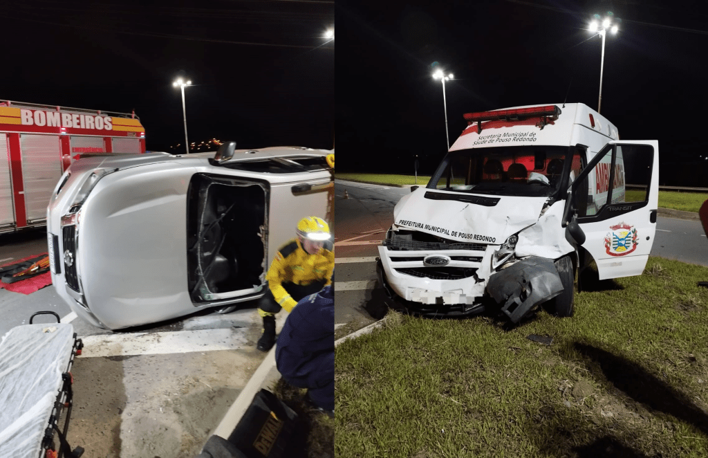 O segundo veículo envolvido era uma ambulância branca da Prefeitura de Pouso Redondo, conduzida por um homem que não sofreu ferimentos.