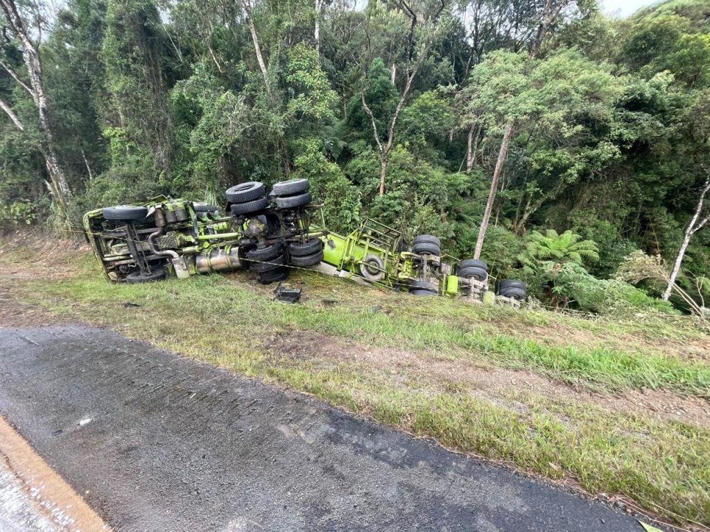 - O motorista da carreta, de 33 anos, foi encontrado consciente e com dor no tórax, sendo conduzido ao Hospital de Bom Retiro.