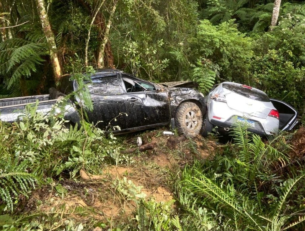 Os veículos envolvidos foram uma Mitsubishi L200 Triton, com placas de Guaraciaba (SC), e um Chevrolet Onix, de Balneário Camboriú (SC). Ambos os carros foram encontrados fora da pista, em uma área de difícil acesso, já sem ocupantes no momento da chegada das equipes de resgate.