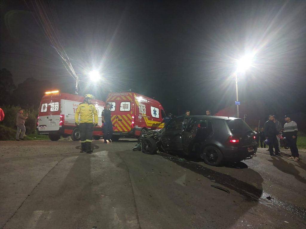 No VW Golf estavam cinco pessoas. Um homem de aproximadamente 50 anos e a condutora, de 22, não apresentavam ferimentos. Uma adolescente de 14 anos, consciente e orientada, relatava dores na perna esquerda e foi encaminhada ao Hospital Infantil pela equipe do SAMU.