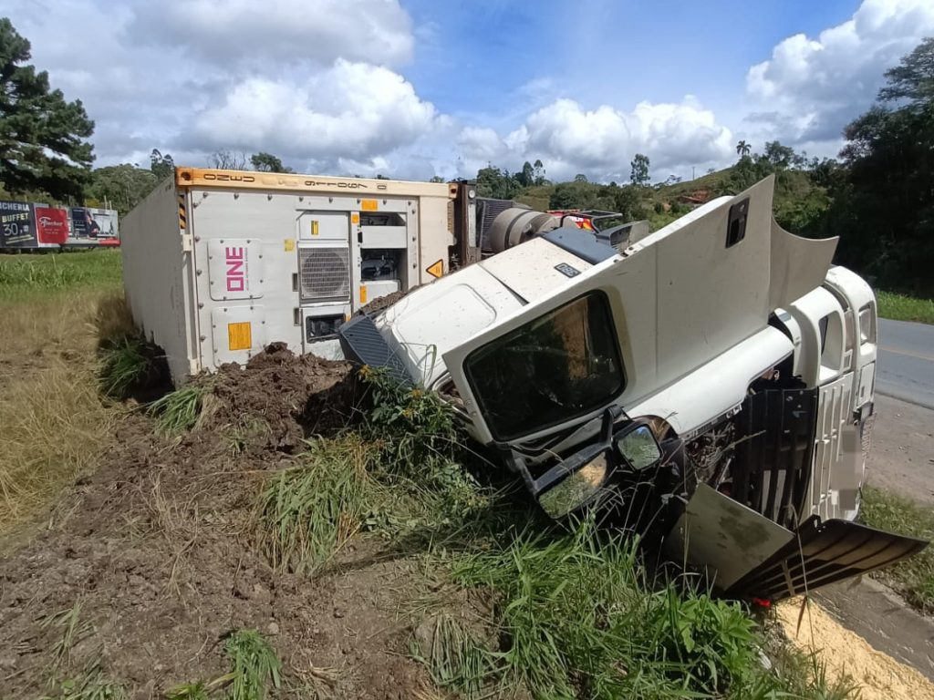 O motorista do veículo ficou preso às ferragens, encarcerado entre a cabine da carreta e uma canaleta de concreto. Infelizmente, ele já estava sem sinais vitais quando as equipes chegaram.