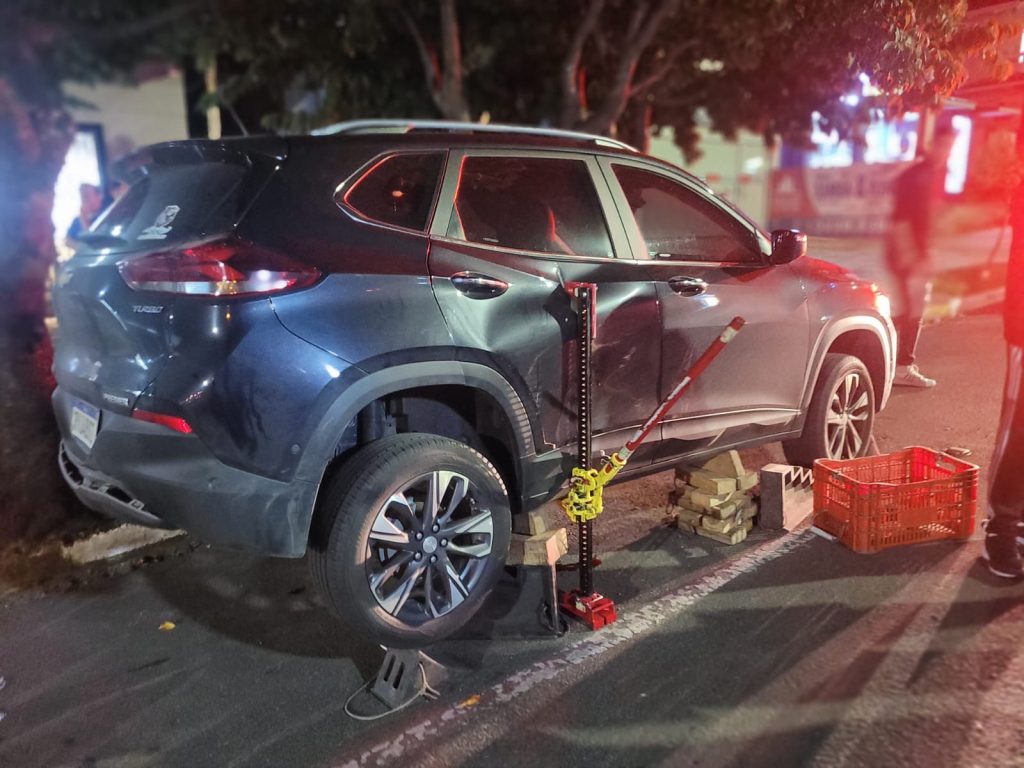 Após o impacto inicial, os ocupantes da moto foram arremessados e atingiram a traseira de um Chevrolet Tracker que estava estacionado na via. Com a força da colisão, a passageira acabou ficando presa embaixo do veículo estacionado.