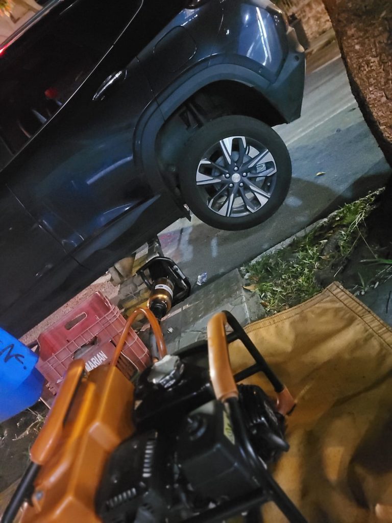 Na sequência, os bombeiros concentraram esforços no resgate da adolescente, que estava consciente e orientada, mas presa sob o carro e com ferimentos graves em um dos membros inferiores. Para a retirada, foi necessário utilizar equipamentos de elevação e expansão hidráulica, permitindo a suspensão do veículo em cerca de 40 centímetros.